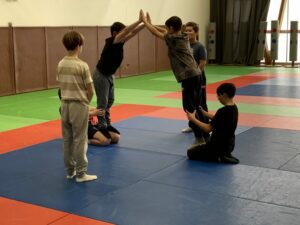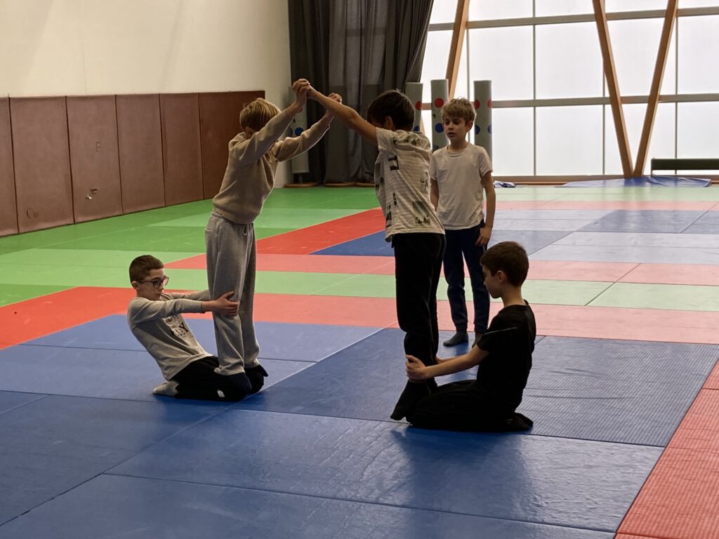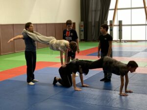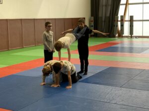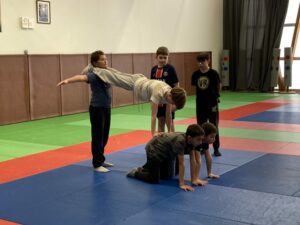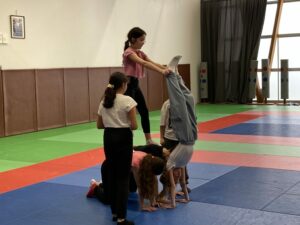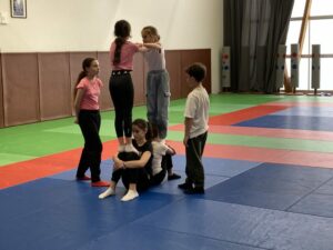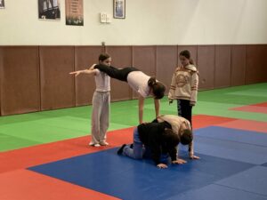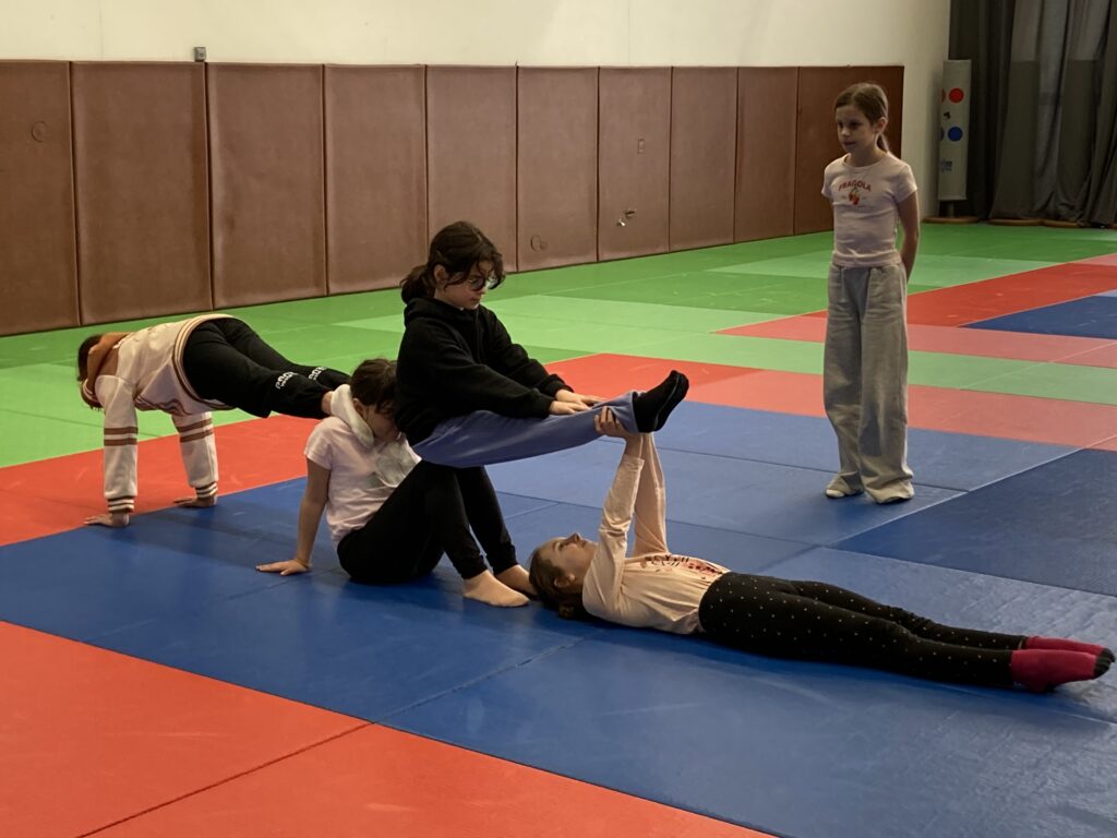 Pour clôturer les séances d’acrosport, de très jolies figures acrobatiques ont été réalisées par les quatre groupes d’enfants.