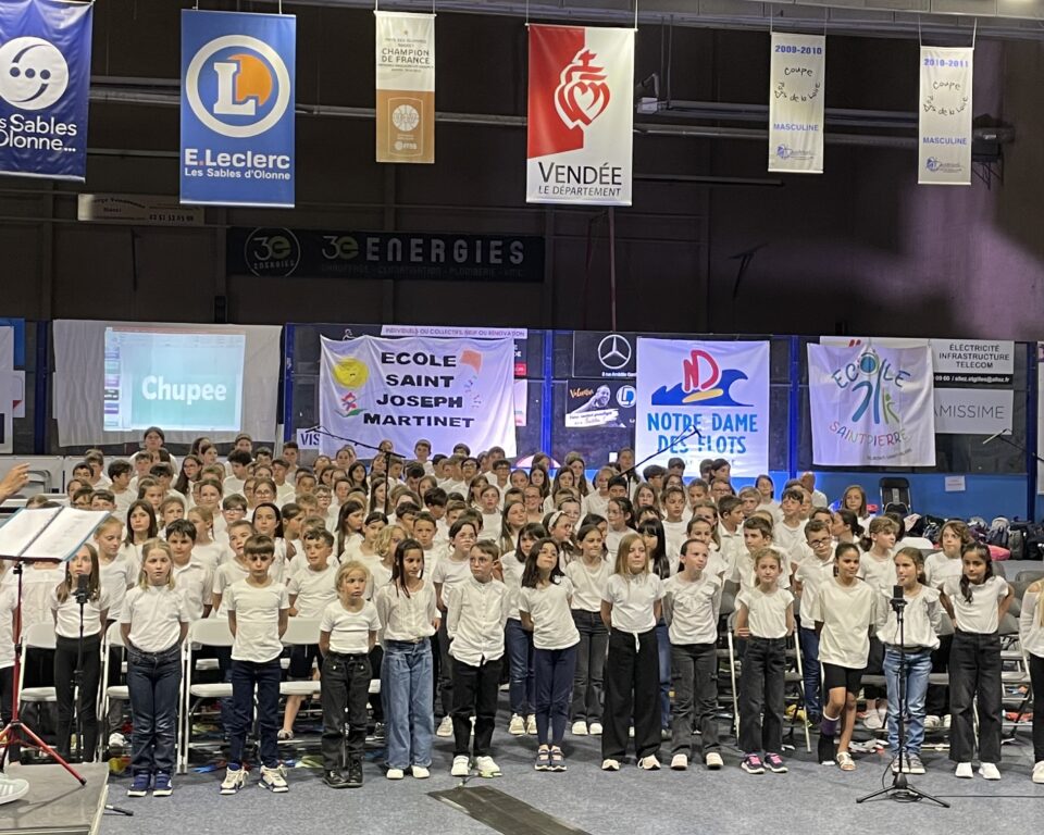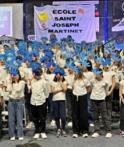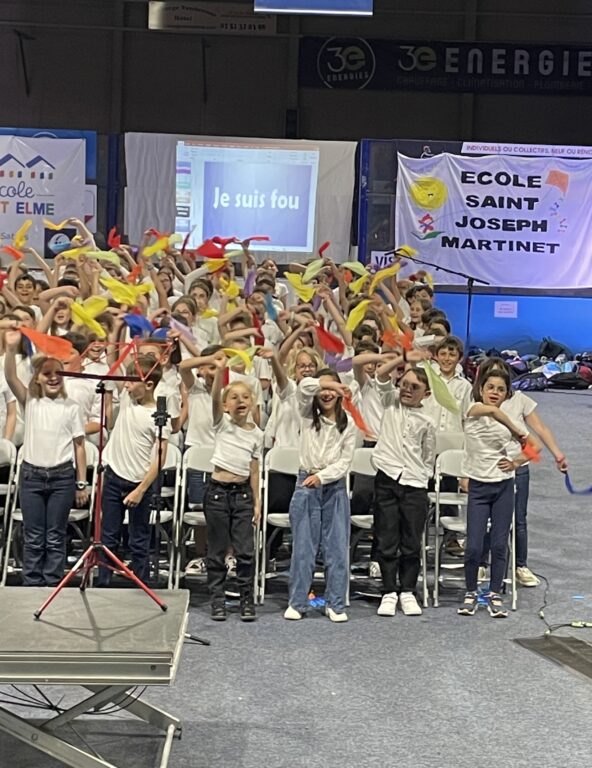 Mardi 20 Mai, les élèves de CE2, CM1 et CM2 sont allés à la salle Beauséjour en début d’après-midi pour répéter le répertoire des chants de Chante Mai avec les autres écoles privées du secteur.