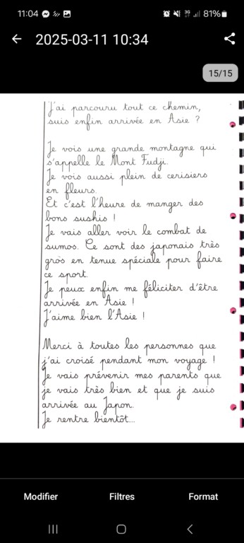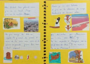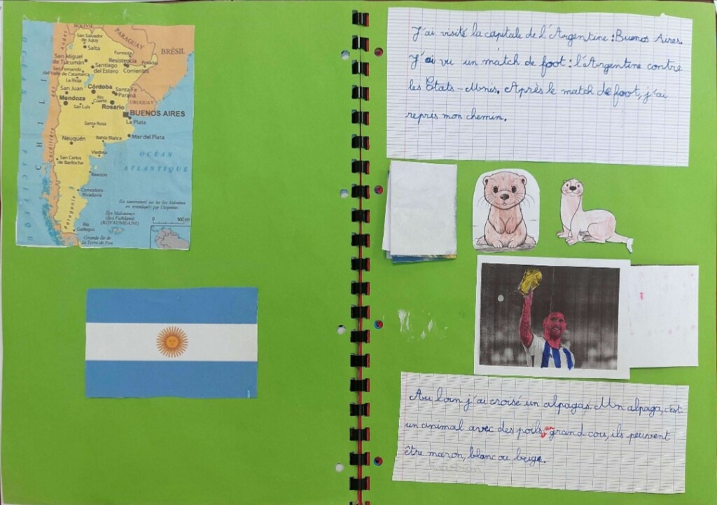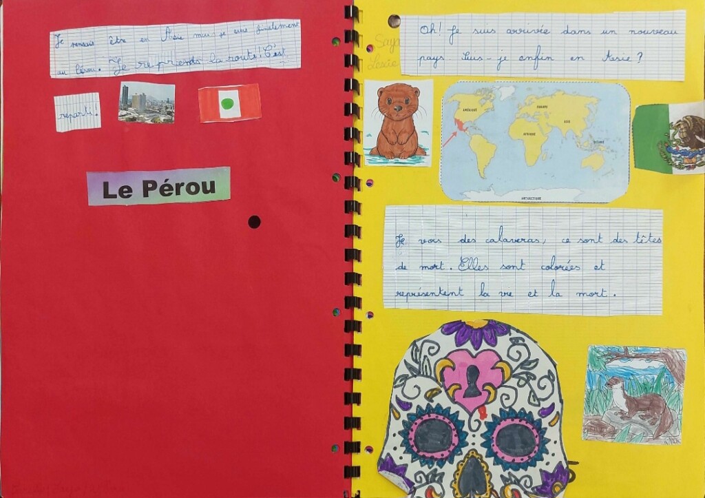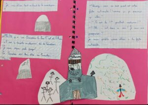 Il y avait tout de même quelques contraintes à respecter : nous faire découvrir 3 spécialités (plats, monument, langue, tradition …) du pays, faire une rencontre, utiliser le “je” pour parler et commencer et finir leur histoire de la même manière en suivant un modèle établi ensemble en amont.
