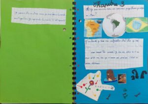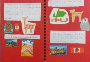 Ensuite, nous avons divisé les élèves en 5 groupes correspondant à 5 pays de l’Amérique. Ils ont pu collaborer en groupe de travail et avec les informations récoltées à la maison ainsi que celles fournies en classe, pour débuter leur premier jet d’écriture.