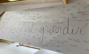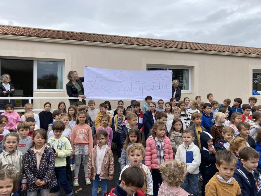 Tour à tour, les classes ont défilé et une jolie banderole “Lire c’est grandir” (notre thème de l’année) avec tous les prénoms des enfants s’est déroulée .