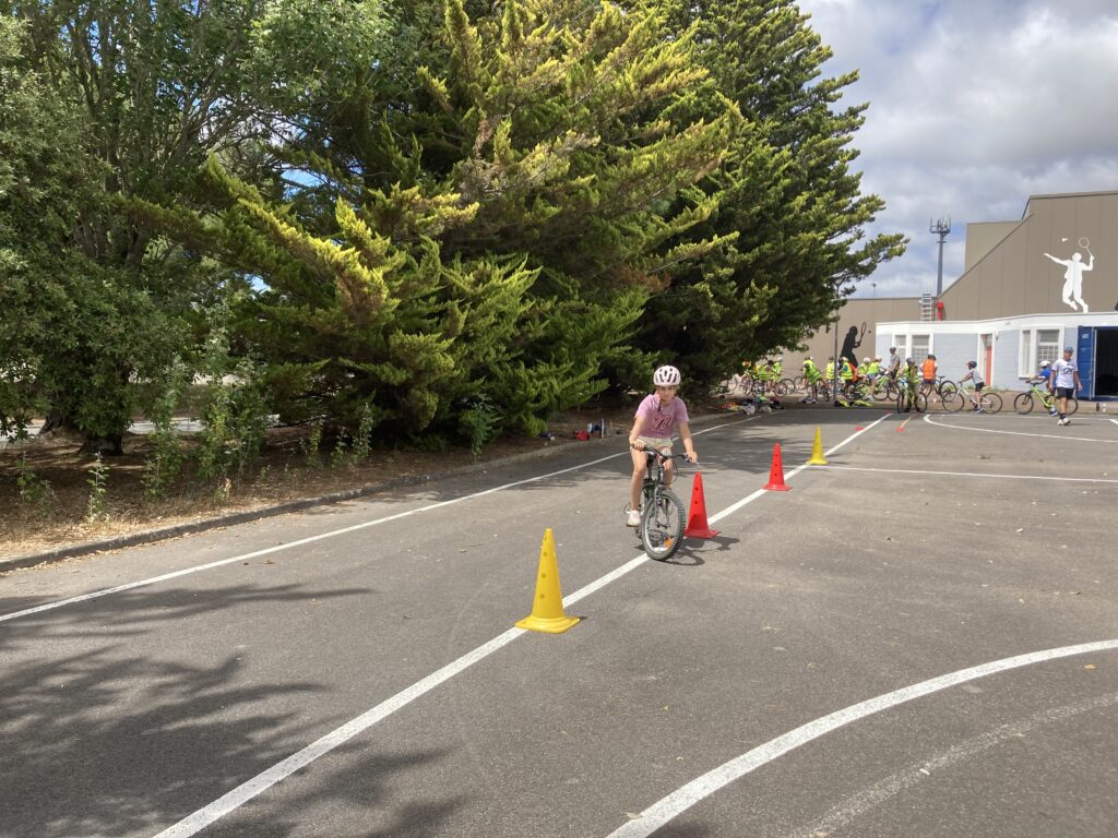 Lors de chaque séance d’EPS encadrée par JB, notre moniteur sportif municipal, sur un plateau spécialement conçu pour le SRAV (marquages au sol, panneaux de signalisation, feux tricolores,..) les élèves de CM2 ont validé 3 blocs  : bloc 1 : Savoir pédaler = maîtriser les fondamentaux du vélo, bloc 2: Savoir circuler = découvrir la mobilité à vélo en milieu sécurisé, bloc 3 : Savoir Rouler à Vélo = circuler en situation réelle.