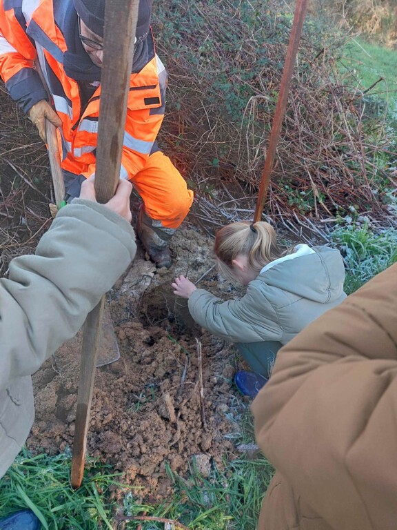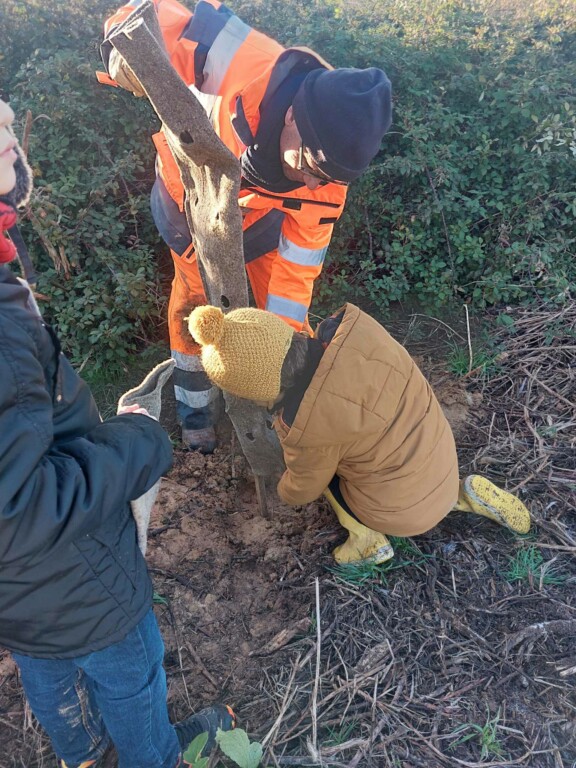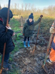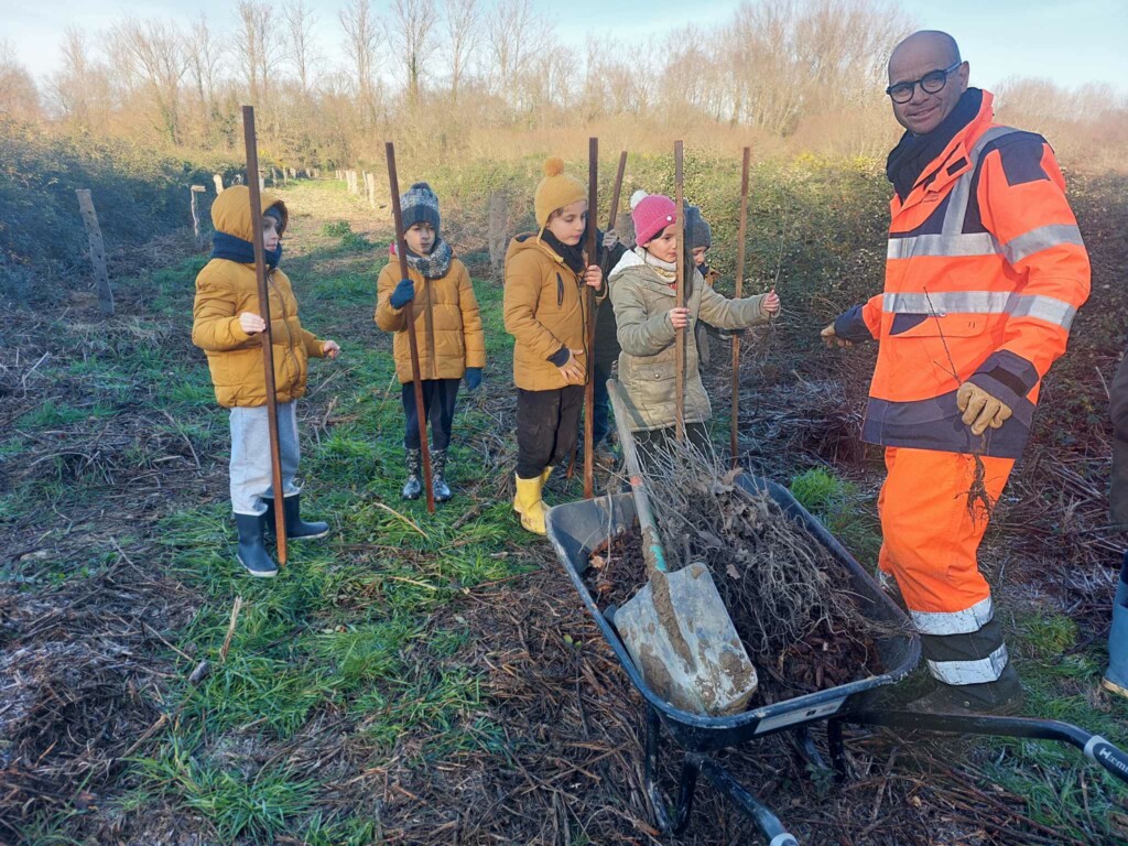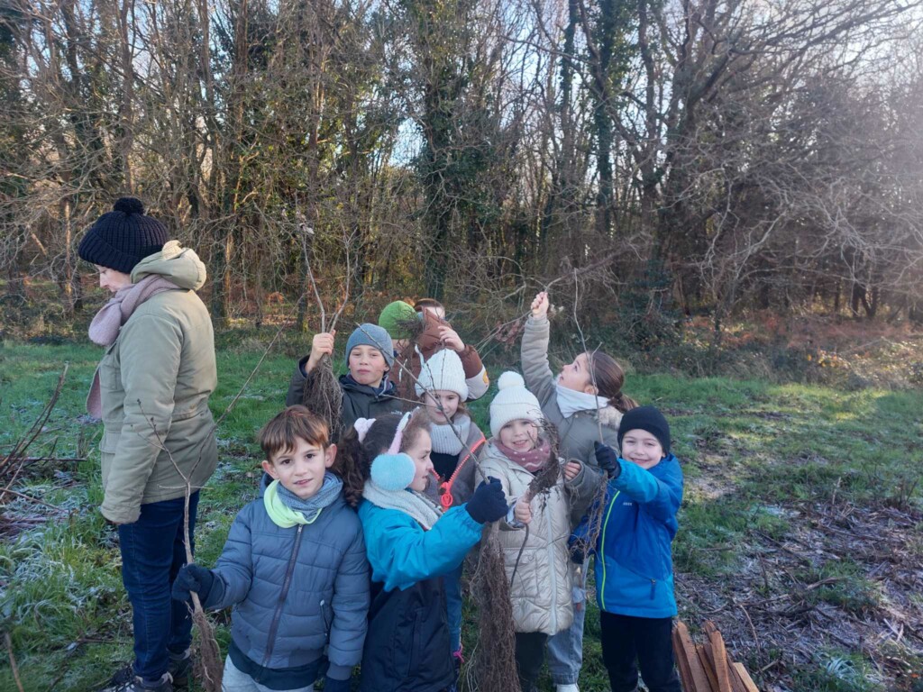Le lundi 13 janvier, les élèves de CE1-CE2 ont rejoint Justine au bois du Fenestreau (chemin près de la SPA) pour un projet de plantation.