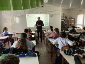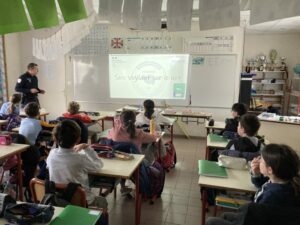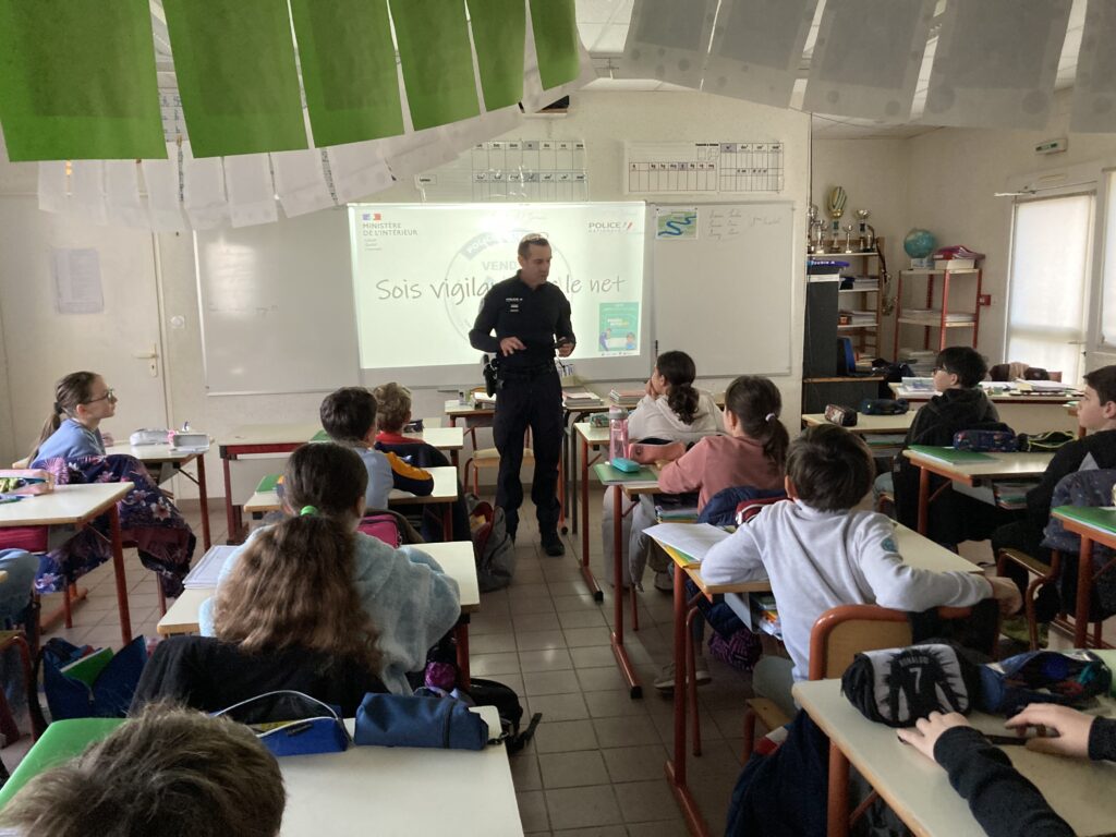 En présence d’un policier de la police nationale, tous les enfants de CM2 ont passé leur permis internet.