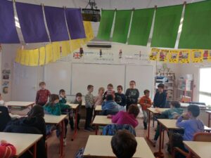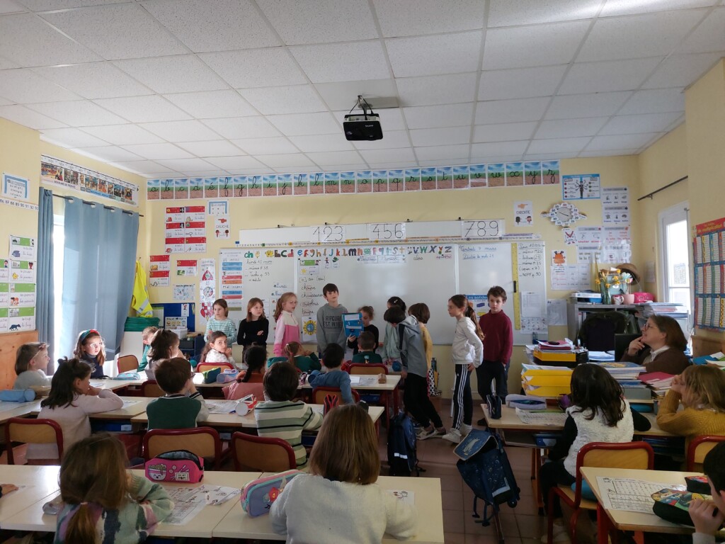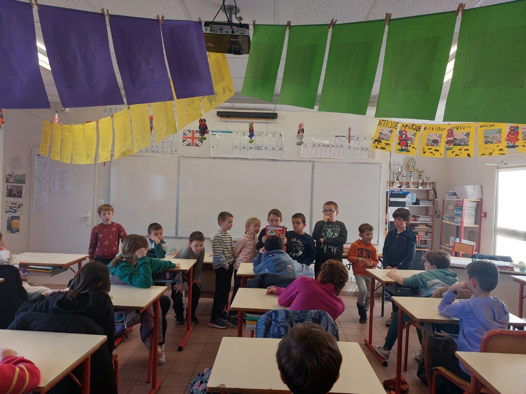 La classe de CE1 – CE2 est venue fièrement présenter un projet qui leur a demandé beaucoup de travail.