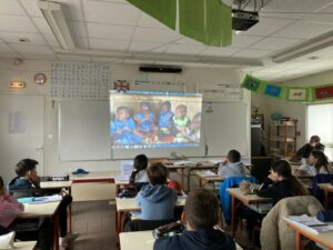 Les enfants ont pu voir dans la matinée une vidéo qui montrait toutes les actions réalisées au sein d’une école dans la région de Casamance et échangé avec les personnes présentes de l’association.